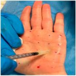 برای تزریق بوتاکس به کف دست معمولا از یک طرح شبکه بندی شده با نقاطی به فاصله 1 الی 2 سانتیمتر استفاده میشود. به این صورت که ابتدا کف دست به طور دقیق توسط متخصص زیبایی شبکه بندی میگردد. این نقاط با توجه به محل غدد تعریق به صورت افقی و عمودی در یک راستا مکان یابی میشوند. تعداد و فاصله بین این نقاط بر حسب آناتومی زیباجو، میزان تعریق و انتظارات وی بستگی دارد. معمولا قبل از درمان نقاط تزریق به طور دقیق علامت گذاری میشود.